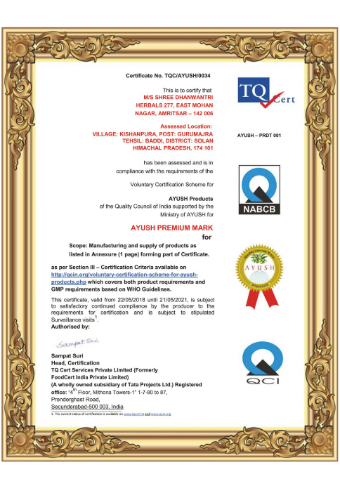 Our strength lies in balancing traditional Ayurvedic ingredients with robust, certified production systems. Every product is manufactured in ISO 9001:2015 and GMP-certified facilities and we ensure the highest hygiene and quality standards are maintained.